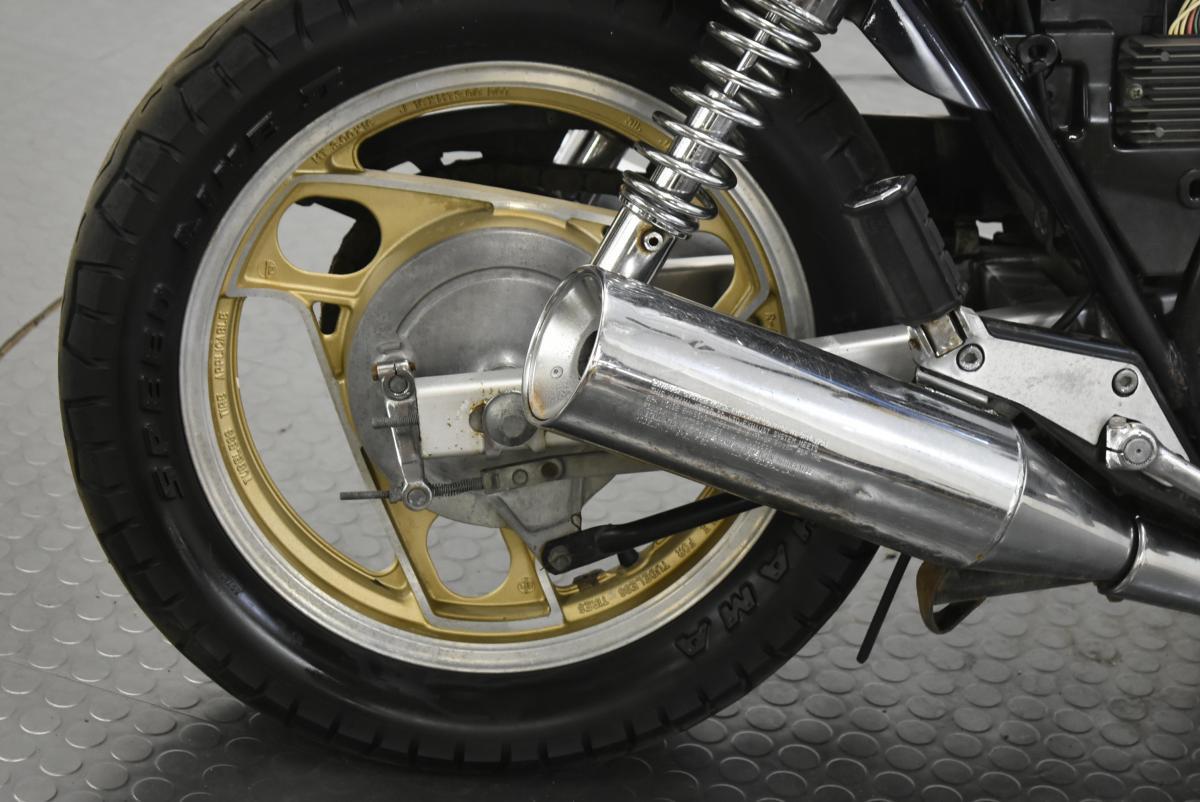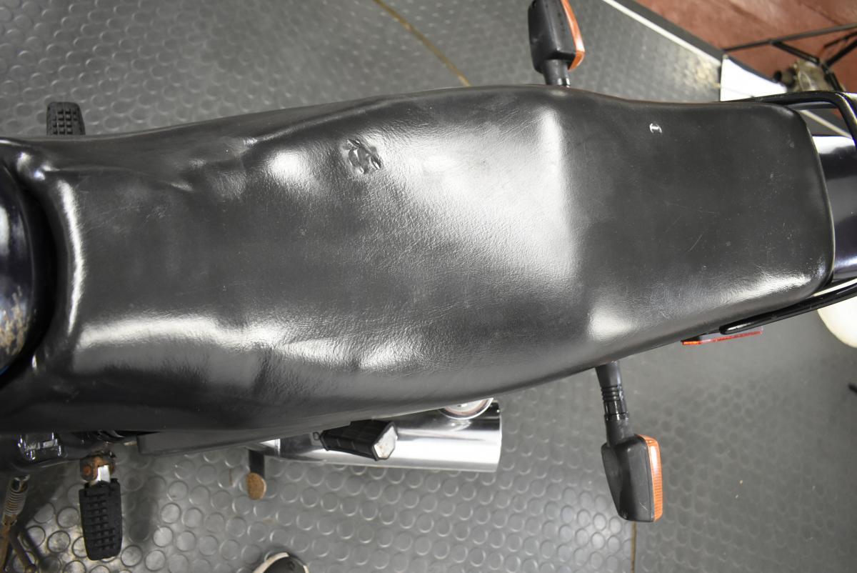 It has stood a while, so the battery is flat, paintwork is faded, carburettors are stuck, tyres & seat cover are perished.