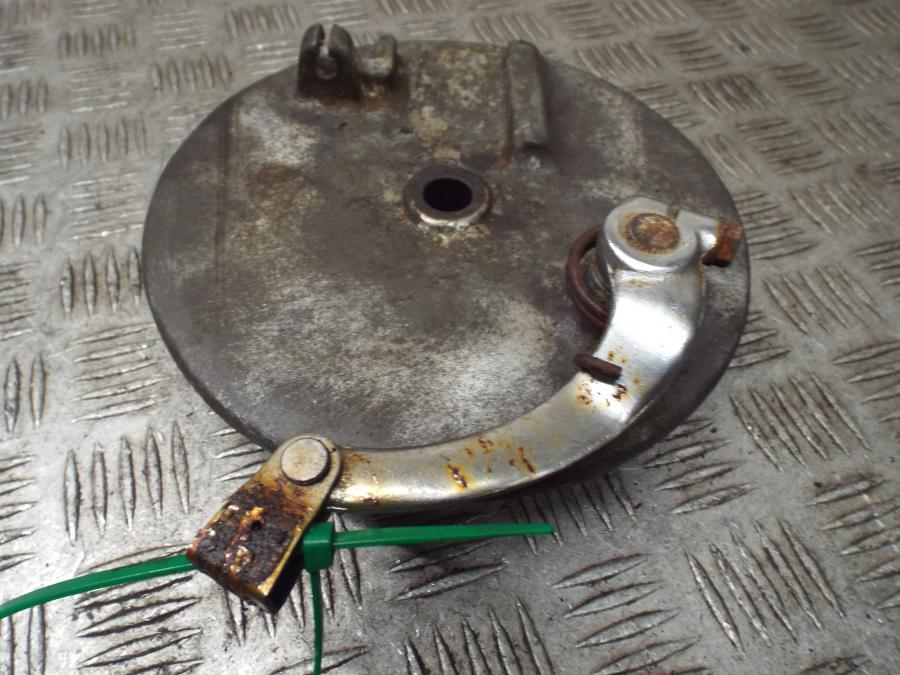 Brake plate is in a good and usable condition. Does have rust. Shoes cannot be guaranteed. Comes as shown in the images below.